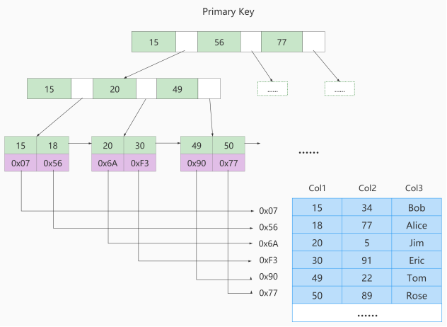 - InnoDB是使用页来作为管理存储空间的基本单位,最多能保证16KB的连续存储空间,而随着表中记录数量的增多,需要非常大的连续的存储空间才能把所有的目录项都放下,这对记录数且非常多的表是不现实的。