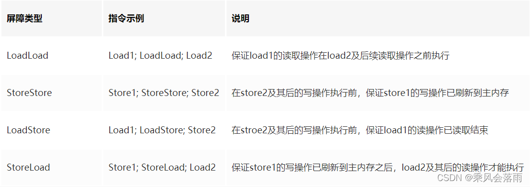 因此重排序时,不允许把内存屏障之后的指令重排序到内存屏障之前。