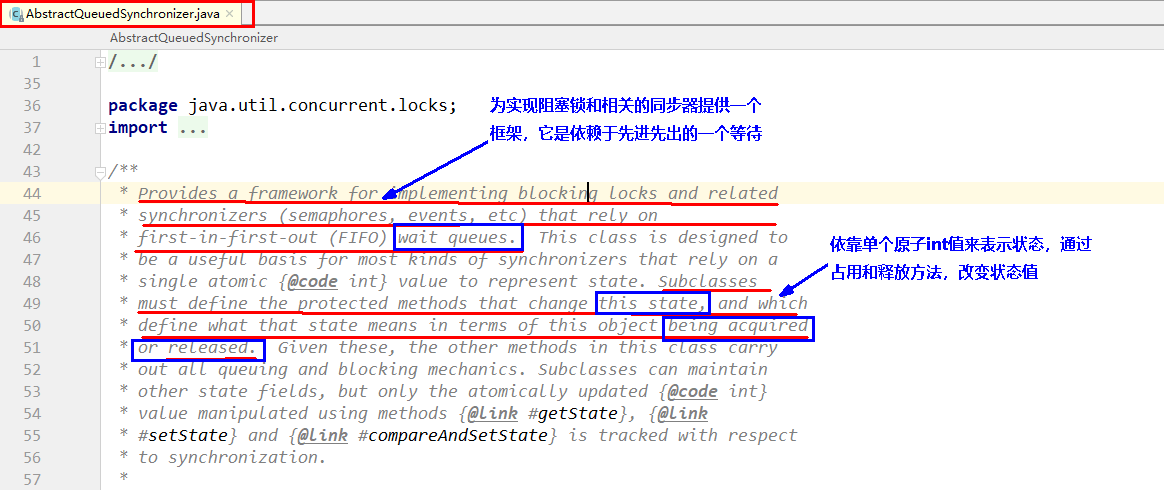 通常地:AbstractQueuedSynchronizer简称为AQS