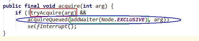 acquireQueued(addWaiter(Node.EXCLUSIVE), arg)